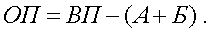 Товарная продукция, или, иначе, показатель объема продукции (ОП) характеризует ту продукцию, которая предназначена для реализации. Расчет данного показателя осуществляется на основе валовой продукции за вычетом стоимости тех элементов, которые не подлежат реализации (А) (полуфабрикаты и т.д.), включая и стоимость той части выработки, которая используется на собственные нужды предприятия (Б):