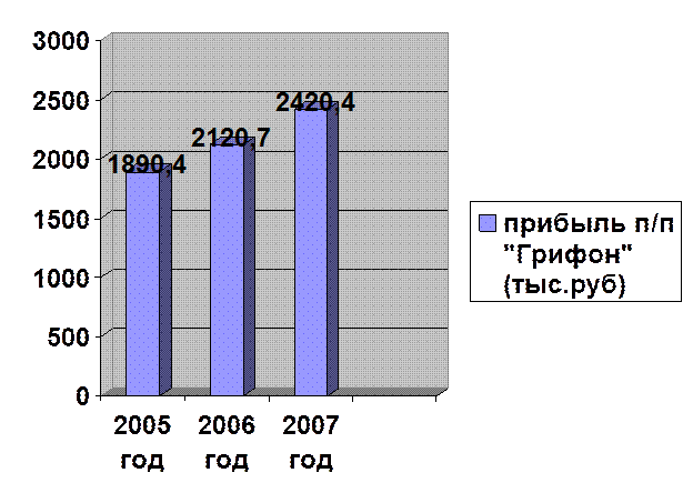 Диаграмма 1. Рост прибыли предприятия «Грифон» за последние 3 года.