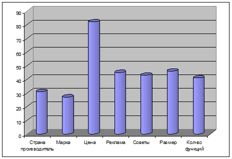 Руководство фирмы считает, что советы друзей, размер оборудования и количество его функций одинаково мало влияет на выбор потребителей. Хотя респонденты отметили, что данные характеристики не особенно влияют на их мнение (четвертое, пятое, шестое места), тем не менее влияние это существует, и совсем сбрасывать его со счетов было не правильным со стороны сотрудников компании. (см. диагр. №4)