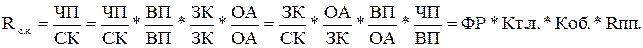 V = Nр * (ЧД/ Nр) * (ЧЧ/ЧД) * (V/ЧЧ) = N * Д * П * В,