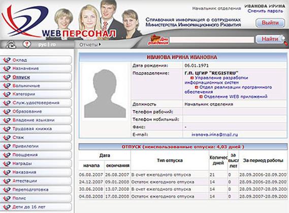 3. Веб-интерфейс доступа руководящего состава к кадровой информации «Web-Персонал» (рис. 3.2):