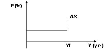 невмешательство государства в экономику. На рынках товара и ресурсов преобладает конкуренция, в результате которой предприниматели перемещаются от одной отрасли к другой, создавая рабочие места и расширяя Y до Y (f). Экономика будет постоянно находиться на этом уровне, меняется лишь уровень цен. 2. Кейнсианская теория