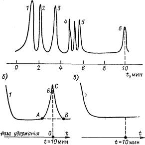 Количественный газохроматический анализ позволяет определить состав многокомпонентной смеси, содержание в ней одного или нескольких компонентов и общее содержание остальных веществ. Эволюционная хроматограмма представляет собой ряд пиков. Каждый пик, соответствующий определенному веществу, характеризуется следующими параметрами: высотой ОС, шириной его основания АВ