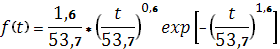 Рисунок 1 - Функция плотности распределения вероятности f(t),наработки турбобура