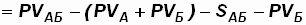 Допустим, что образовавшаяся после поглощения компания имеет рыночную стоимость , а стоимости компаний А и Б до их объединения равны и соответственно, тогда выгоду от слияния ( ) получим из выражения: