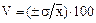 где V- коэффициент вариации, σ — среднее квадратичное отклонение, — среднее ожидаемое значение.
