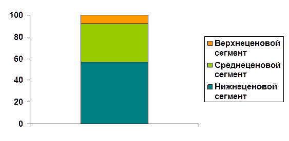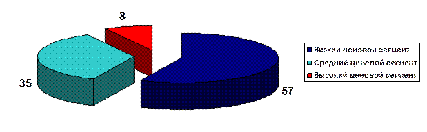 Диаграмма 7. Соотношение ценовых сегментов рынка обуви в стоимостном выражении, 2008 г., %......................................................................................................................................62