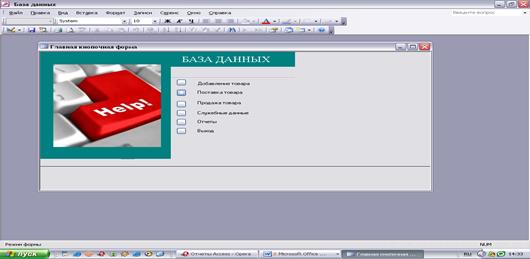 С целью реализации этих задач я создала кнопочную форму, элементы которой представлены на следующих рисунках.