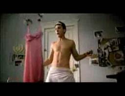 (рис.10) В данном рекламном ролике представлен новый товар продукции АХЕ - гель для душа «АХЕ-effect». В видеоролике представлен моющийся мылом молодой человек. Выйдя из душа, к нему подлетают птицы с полотенцем, белка красит его губы помадой, оленёнок несет ему нижнее женское белье, енот надевает диадему на голову, все звери пытаются одеть молодого человека в женскую одежду, превратить в девушку. Он пытается отмахнуться от них. Тем самым представлена цепочка последовательных друг за другом утверждений о превращении в девушку, если мыться женским мылом. В рекламном сообщении присутствует слоган: «Если ты пользуешься женским мылом, ты пахнешь как женщина». В конце рекламного сообщения представлен этот же молодой человек в окружении девушек, моющих его новым гелем для душа АХЕ-еffect.