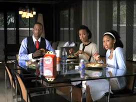 (рис.9) данную композицию можно рассмотреть на примере рекламного ролика корпорации «Макдоналдс». Рекламное сообщение начинается с танцующего маленького мальчика, входящего на кухню, к своей семье на завтрак, в сопровождении ритмичной музыки. Мальчик танцует под музыку, садится за стол, привлекая внимания всей семьи. Он кушает продукты компании «Макдоналдс», двигаясь под музыку. Сообщение заканчивается тем, что вся семья, спокойно завтракающая до его появления, начинает двигаться и пританцовывать под звучащую музыку. Потребитель запоминает начало рекламного сообщения и его окончание.