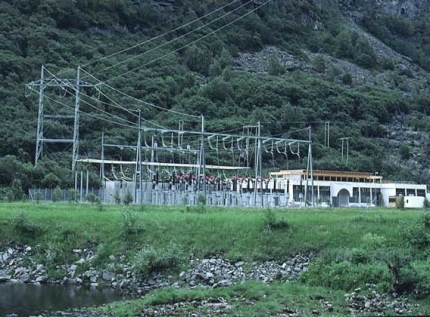 На районной (т.е. приближенной к источникам энергоресурсов) электростанции электроэнергия вырабатывается чаще всего электромашинными генераторами переменного тока. Для уменьшения потерь при ее передаче и распределении напряжение, снимаемое на выходные электрогенератора, повышается трансформаторной подстанцией. Затем электроэнергия передается по высоковольтным линиям электропередачи (ЛЭП) на большие расстояния, которые могут измеряться сотнями километров.