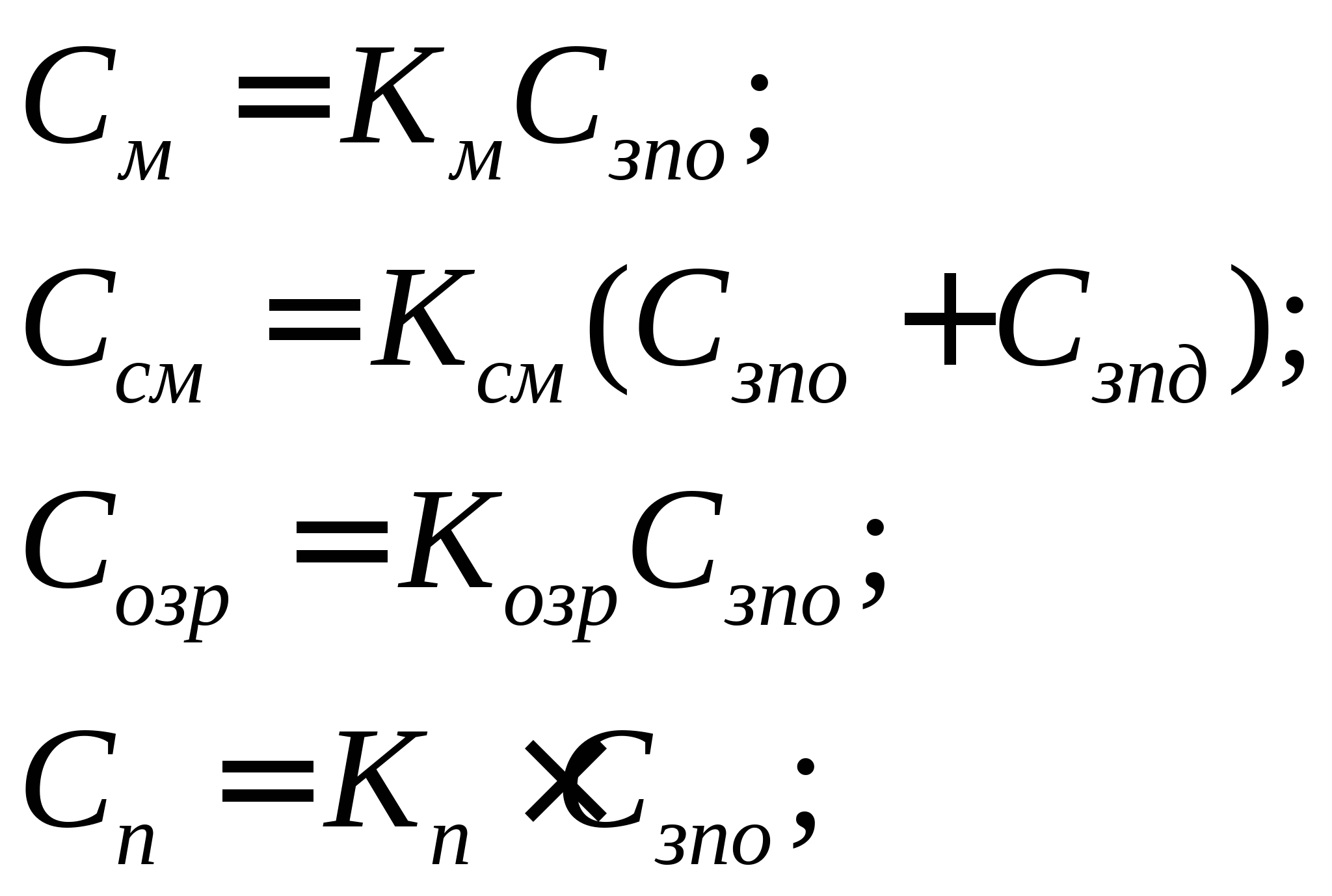 | - сварочные | 0,7…1,1 | | - гальванические | 0,3…0,7 | | - постановка дополнительной ремонтной детали | 1,0…1,8 | | - напыление | 0,6…1,2 | | - механическая обработка | 0,05…0,20 | | - склеивание | 0,12…0,40 | | Кзпд | 0,10…0.18 | | Ксн | 0,395 | | Кц | 0,85…1,05 | | Козр | 0,55…0,70 | | Крсэо | 0,65…0,85 | | Кп | 0,05…0, 1 |