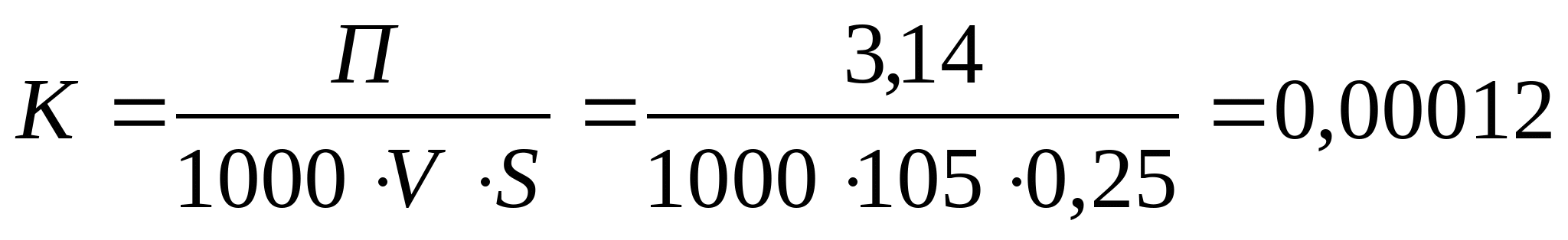 где : K-коэфициент обтачивания S-подача, S=0,25 мм/об V-скорость вращения детали, V=105 м/мин D-диаметр, D=24 мм L-длинна обтачиваемой поверхности, L=30 мм