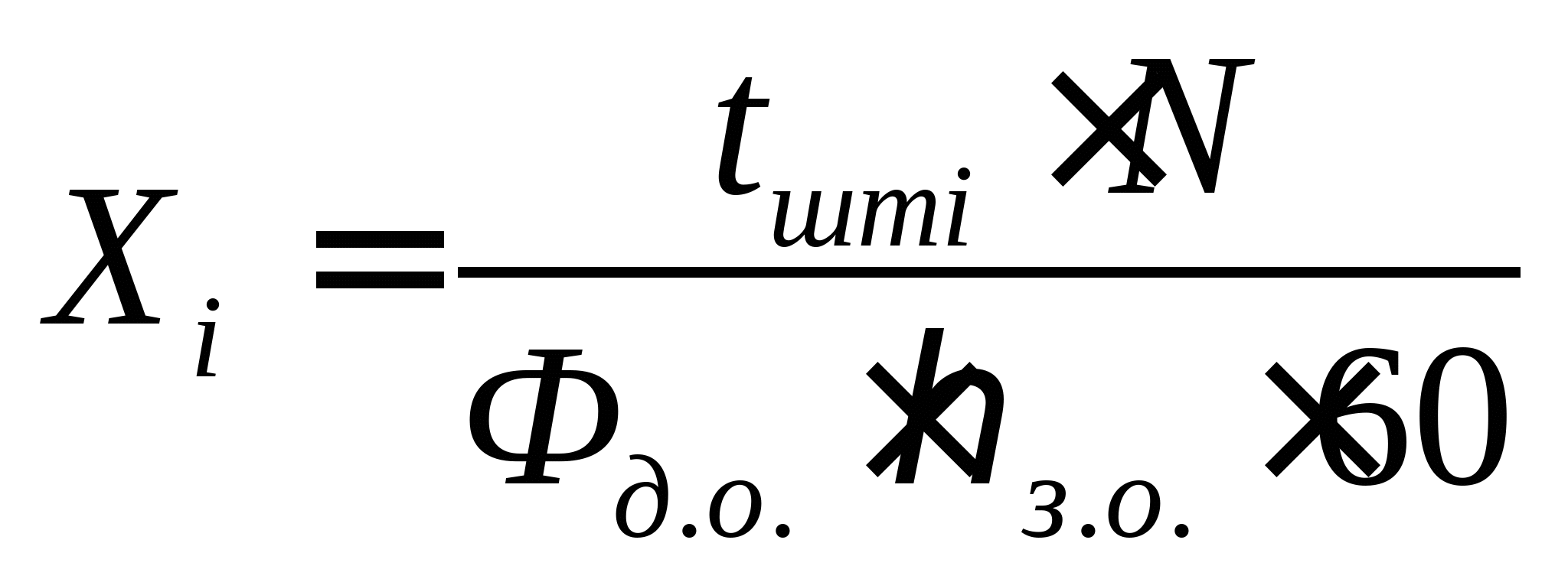 2.2 Определение программы восстановления деталей Производственная программа по восстановлению деталей определяется, исходя из анализа разработанного технологического процесса. Для этого необходимо определить минимальную норму времени на выполнение основной операции. Фд.о – действительный годовой фонд времени работы оборудования.. Фонд времени Фд.о – это время в часах, в течение которого оборудование может работать при заданном режиме работы с учетом простоев в профилактическом обслуживании и ремонте: , где d - количество выходных дней в году (d = 52); d - количество праздничных дней в году (d = 8); t - средняя продолжительность рабочей смены, ч; t - сокращение длительности смены в предпраздничные дни, ч ( ); n - количество праздников в году (n = 10); у - количество смен работы; - коэффициент использования оборудования (0,95 - 0,98). Фд.о.= Рассчитанный фонд времени служит основанием для определения количества оборудования. Количество металлорежущих станков, стендов, установок и другого оборудования определяется по формуле , где Xi - количество оборудования i-го наименования, шт; - норма времени на выполнение i - ой операции, мин; - нормативный коэффициент загрузки оборудования (для серийного производства = 0,75...0,85). 1. Станок шлицефрезерный 5350  Примем два шлицефрезерных станка. 3. Станок круглошлифовальный 36155  Примем один круглошлифовальный станок. 4. Установка ТВЧ.  Принимаем одну установку.