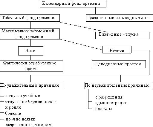 По этим данным можно определить, прежде всего, величины календарного, табельного и максимально возможного фондов рабочего времени.