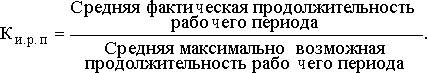Степень использования рабочего периода отражает коэффициент использования рабочего периода (Ки.р.п). Он исчисляется следующим образом: