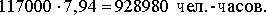 182500 - 56500 - 9000 = 117000 чел.-дней.
