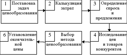 Зная кривую спроса, расчётную сумму издержек и цены конкурентов, фирма готова к определению цены собственного товара. Минимально возможная цена определяется себестоимостью продукции, в худшем случае – переменными издержками, максимальная – наличием уникальных достоинств товара фирмы. Цены товаров конкурентов и товаров-заменителей дают средний уровень, которого фирме и следует придерживаться при назначении конечной цены. Фирмы формируют цены, используя разные методики.