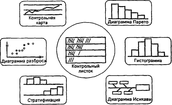 Главным условием повышения конкурентоспособности товаров и организации является повышение качества. В специальной литературе приводятся несколько вариантов набора инструментов качества. Например, рассматривается семь инструментов качества: метод расслоения информации по группам факторов, влияющих на качество процессов, графики, диаграммы Парето, причинно-следственные диаграммы (диаграмма Исикавы), гистограммы, диаграммы разброса, контрольные карты и контрольные листки.