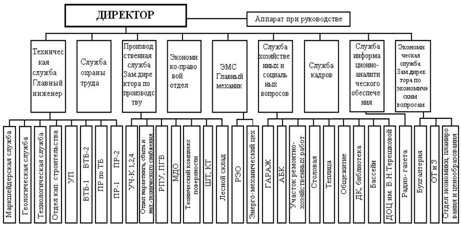 Коллектив возглавляет директор шахты – председатель правления ГП с аппаратом при руководстве, находящимся в непосредственном подчинении одного руководителя.