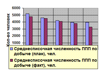 В результате анализа динамики численности и трудоемкости работ наиболее трудоемкими процессами являются очистные работы, подготовительные работы, работы на подземном транспорте и работы на поверхности (за счет чрезмерно увеличенного штата сотрудников на поверхности). Спланирован план добычи угля на 1998 год, который составил 11941,521 тонн/сутки и после внедрения мероприятий по снижению трудоемкости план на 1998 год составит 2175,993 тонн/сутки. Спланирована численность промышленно-производственного персонала по добычи угля, которая составила бы при равных прочих условиях 3372 человека (рост на 3,09% по отношению к базовому году). Выработка на одного работника промышленно-производственного персонала по добыче угля, в результате внедрения мероприятий по снижению трудоемкости производства, повысится на 356,97 грн./месяц (7,14 тонн/месяц), что на 58,35% выше, чем в базовом предыдущем году.