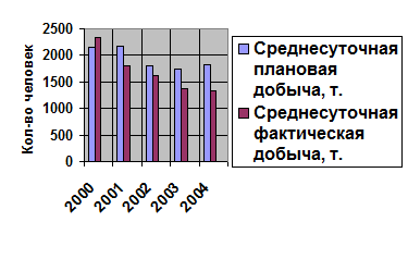 2. Обоснован план добычи угля на 2005 год, который составил 1941,521 тонн/сутки и 2175,993 тонн/сутки после реализации мероприятий по снижению трудоемкости процессов по добыче угля.