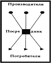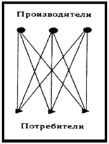 Рис. 2 Роль посредника в изменении структуры и количества связей между производителем и потребителем