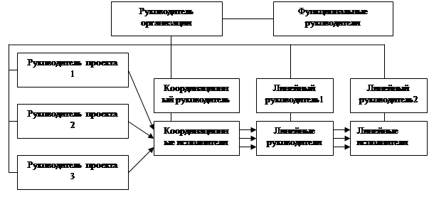 Рассматриваемого типа структуры обладают большой гибкостью, достаточно просты и экономичны. К тому же они позволяют организации параллельно разрабатывать несколько проектов, не меняя привычной структуры управления. Правда, при этом возникает проблема распределения ресурсов (в том числе персонала специалистов) между проектами, а от руководителей проектов требуются не только умелое управление всеми стадиями жизненного цикла разработки, но и учет той роли, которую они играют в сети проектов данной организации. Для облегчения проблем координации в организациях создаются штабные органы управления из руководителей проектов или используются матричные структуры.