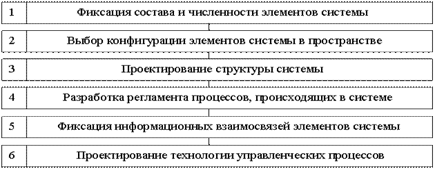 Все это требует тщательно разработанной поэтапной процедуры проектирования структур, детального анализа и определения системы целей, продуманного выделения организационных подразделений и форм их координации.