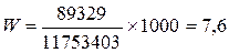 =(202.2 – 196.8)/(78.31 – 72.25) = 0.89