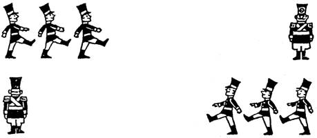 Прочерти путь солдатиков к командиру справа налево и слева направо.