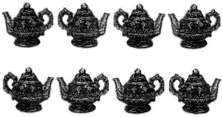 Обведи чайники, носики которых смотрят направо синим карандашом, налево – красным карандашом (см. рис.2).