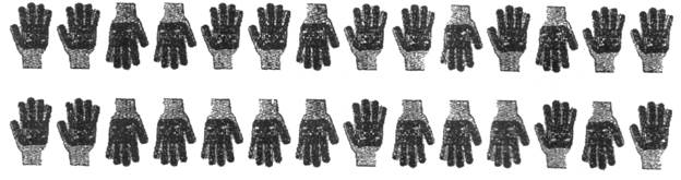 Закрась перчатки на левую руку красным карандашом, а на правую – синим (см. рис. 3).