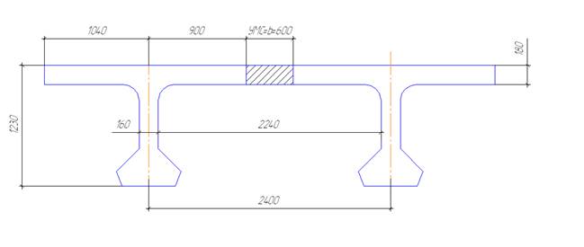 Соответственно сборочный чертеж пролетного строения с металлическим барьерным ограждением будет выглядеть следующим образом.