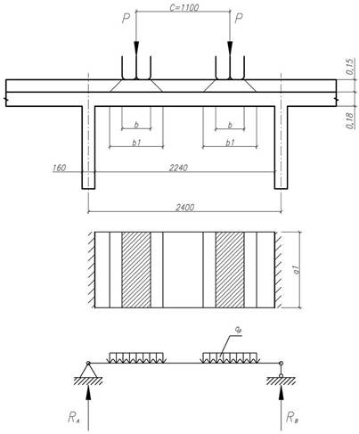 складывается из длин всех балок, зазоров между ними, расстоянием между крайним пролетом и шкафной стенкой устоя козлового типа, ширины шкафных стенок.