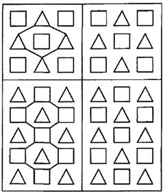 Лучше всех справились с заданием мальчики – Саша и Дима, у них высокий уровень развития наглядно-действенного мышления. У Саши две линии оказались недостаточно прямыми, в двух случаях начертанные линии не вполне правильно соединяют углы фигур, три линии выходят за пределы контура, и пять углов соединены неточно. У Димы одна линия оказалась недостаточно прямой, в двух случаях начертанные линии не вполне правильно соединяют углы фигур, две линии выходят за пределы контура, четыре угла соединены неточно.