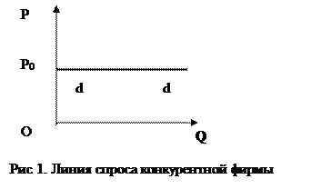 Спрос на продукт фирмы есть максимально возможный объем продаж этой фирмы (в единицах продукта) при некоторой установленной ею цене на свой продукт. Спрос на продукцию отдельной фирмы в условиях совершенной конкуренции абсолютно эластичен, кривая спроса – горизонтальная линия (рис.1).