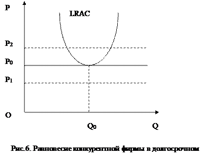 на рис.6), поскольку в такой ситуации фирма убыточна. Это следует из формулы, задающей величину прибыли фирмы в долгосрочном периоде: