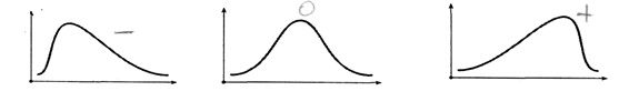 На рис. 2.9 представлены кривые распределения с отрицательной, нулевой и положительной асимметрией (слева направо) соответственно