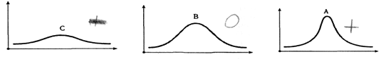 средневершинная, имеет нулевой эксцесс, характерный для нормальной кривой, третья кривая (С) – плосковершинная, кривые такого типа имени эксцесс меньше нуля.