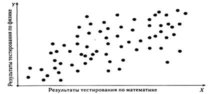 Диаграмма рассеяния, показывающая связь результатов тестирования группы школьников по математике (