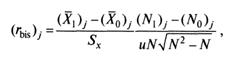 где — среднее значение индивидуальных баллов испытуемых, выполнивших верно у-е задание теста; — среднее значение индивидуальных баллов испытуемых, выполнивших неверно у-е задание теста; — стандартное отклонение по множеству значений индивидуальных баллов; — число испытуемых, выполнивших верно у-е задание теста; — число испытуемых, выполнивших неверно у-е задание теста; N —