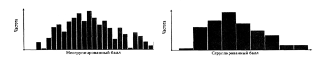 Излишне высокая дисперсия, характерная для случая, когда все учащиеся отличаются по числу выполненных заданий, также грозит неприятными последствиями и требует переработки теста. Превышение разумных пределов величины дисперсии приводит к искажению вида распределения, которое начинает существенно отличаться от планируемой теоретической нормальной кривой.