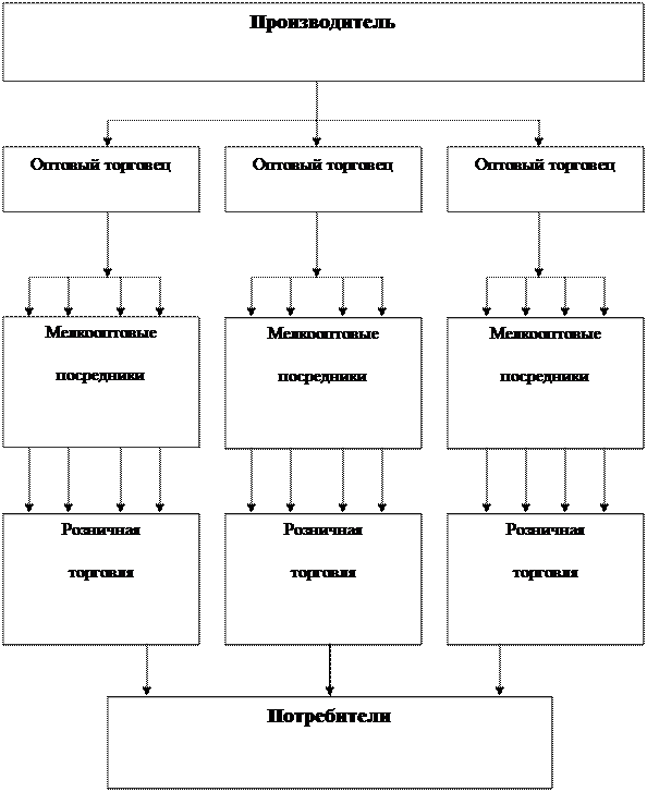 2.1. Интенсивный – большое число оптовых и различных посредников.