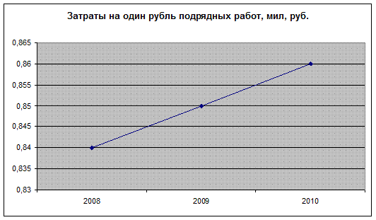 можно утверждать, что уровень рентабельности за 2008-2010 гг. снизился на 4%. Это произошло за счёт того, что прибыль от выполненных подрядных работ за исследуемый период упала, а затраты возросли на 30,6 млн. руб.