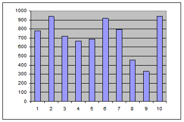 2.1 Построить столбиковую диаграмму для первого показателя для десяти предприятий.
