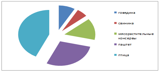 Объем реализации мясных консервов из говядины составляет 3%, из свинины – 2, мясорастительных консервов – 4-5, группы паштетов -10, консервов из мяса птицы – 15%. Прогрессирует рост консервов из свинины и в ближайшие годы он составит 1,5 – 2%.