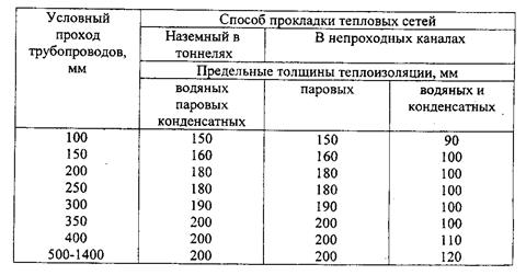 Приложение А9. Предельные толщины теплоизоляционных конструкций.