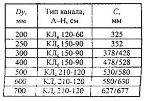 Таблица А.8 Размещение двухтрубных водяных тепловых сетей в непроходных одноячейковых каналах.