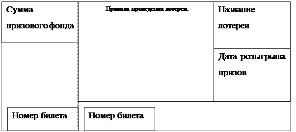 Размер лотерейного билета принимаем равным 15х6 см. Материал, из которого планируется изготавливать лотерейный билет – картон.
